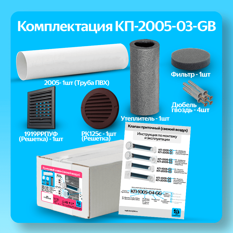 СохранитьПриточный клапан вентиляционный, КП-2005-03-GB, диаметр 125мм, длина 0,5м интересное: