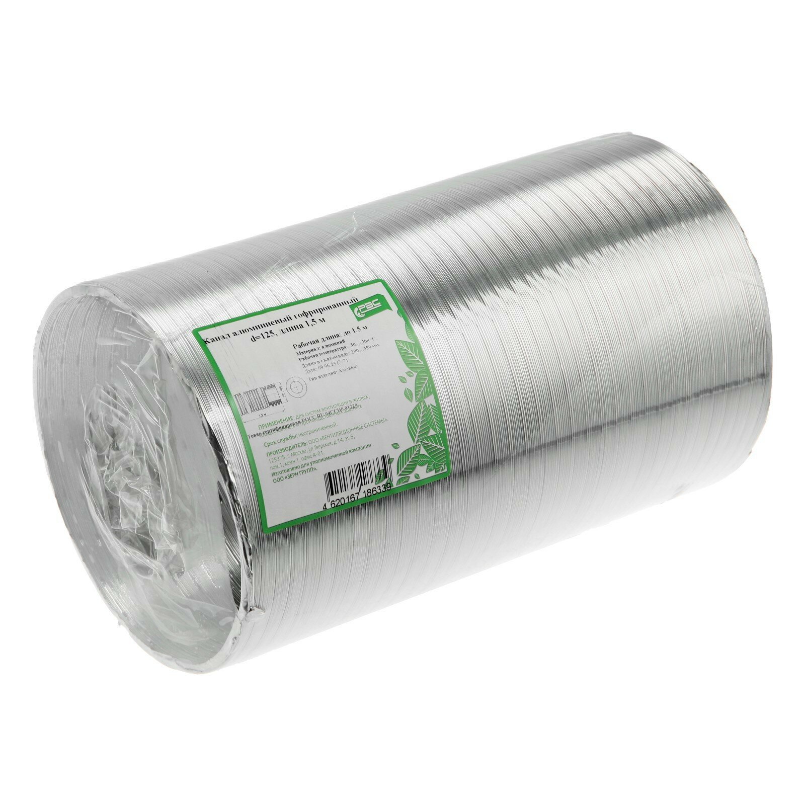 Воздуховод гофрированный "РВС", d=120 мм, раздвижной до 3 м, алюминиевый
