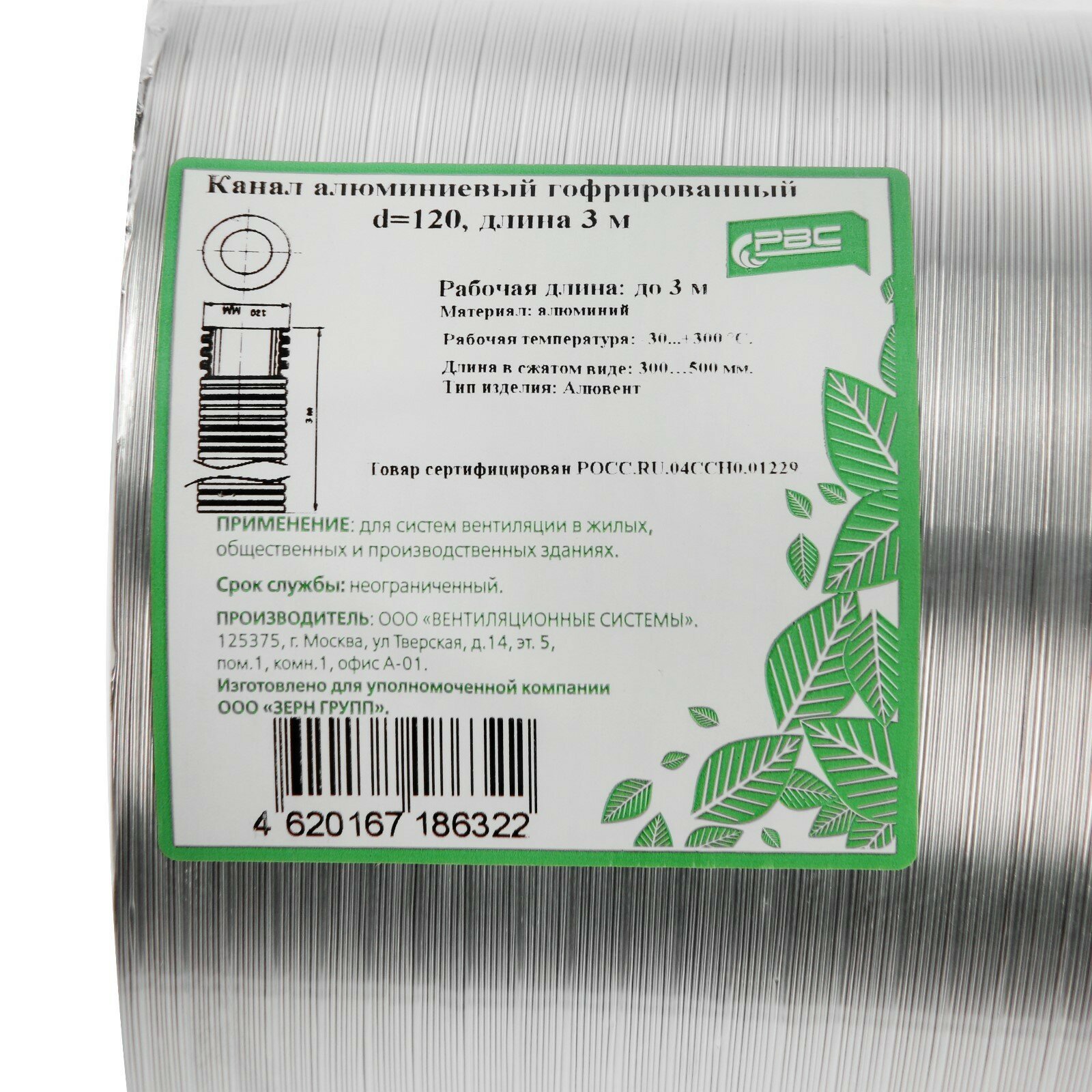 Воздуховод гофрированный "Алювент", d:120 мм, раздвижной до 3 м, алюминиевый интересное: