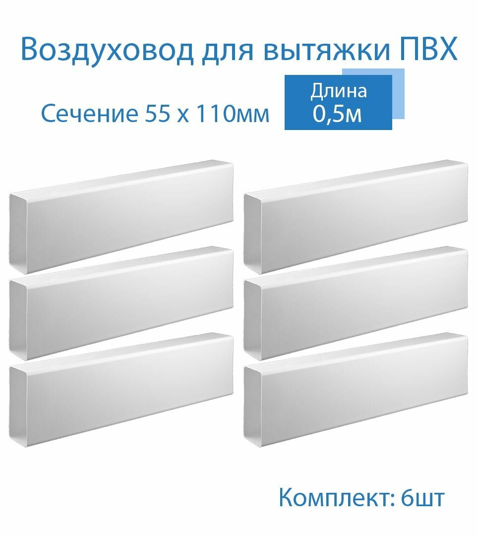 Канал вентиляционный 55 х 110 мм х 1 м плоский, 6 шт, 5010-6, белый, воздуховод, ПВХ