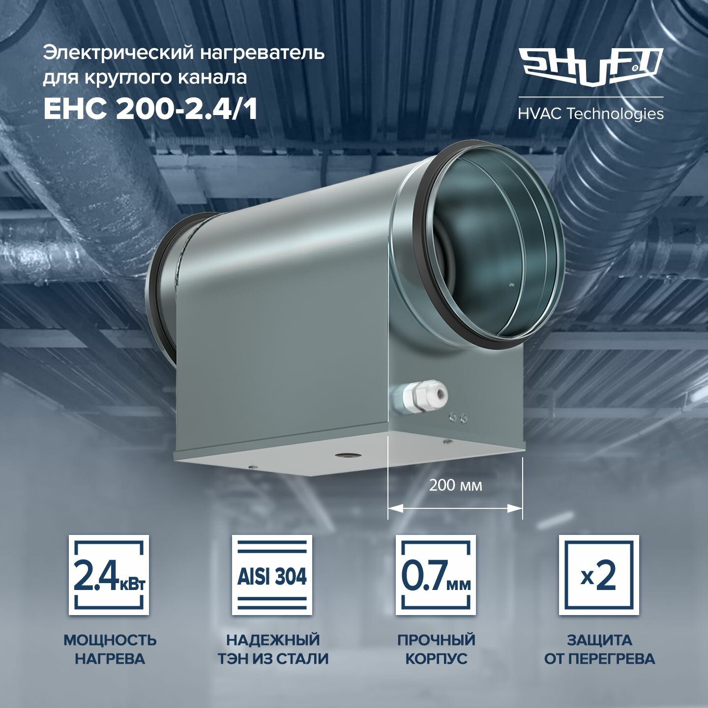 Электрический нагреватель для круглого канала SHUFT EHC 200-2,4/1 SHUFT интересное: