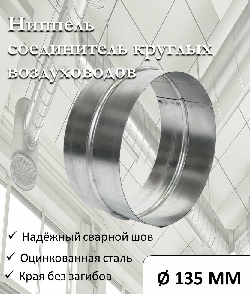 Купить Соединитель, для круглых воздуховодов, D135 оцинкованная сталь