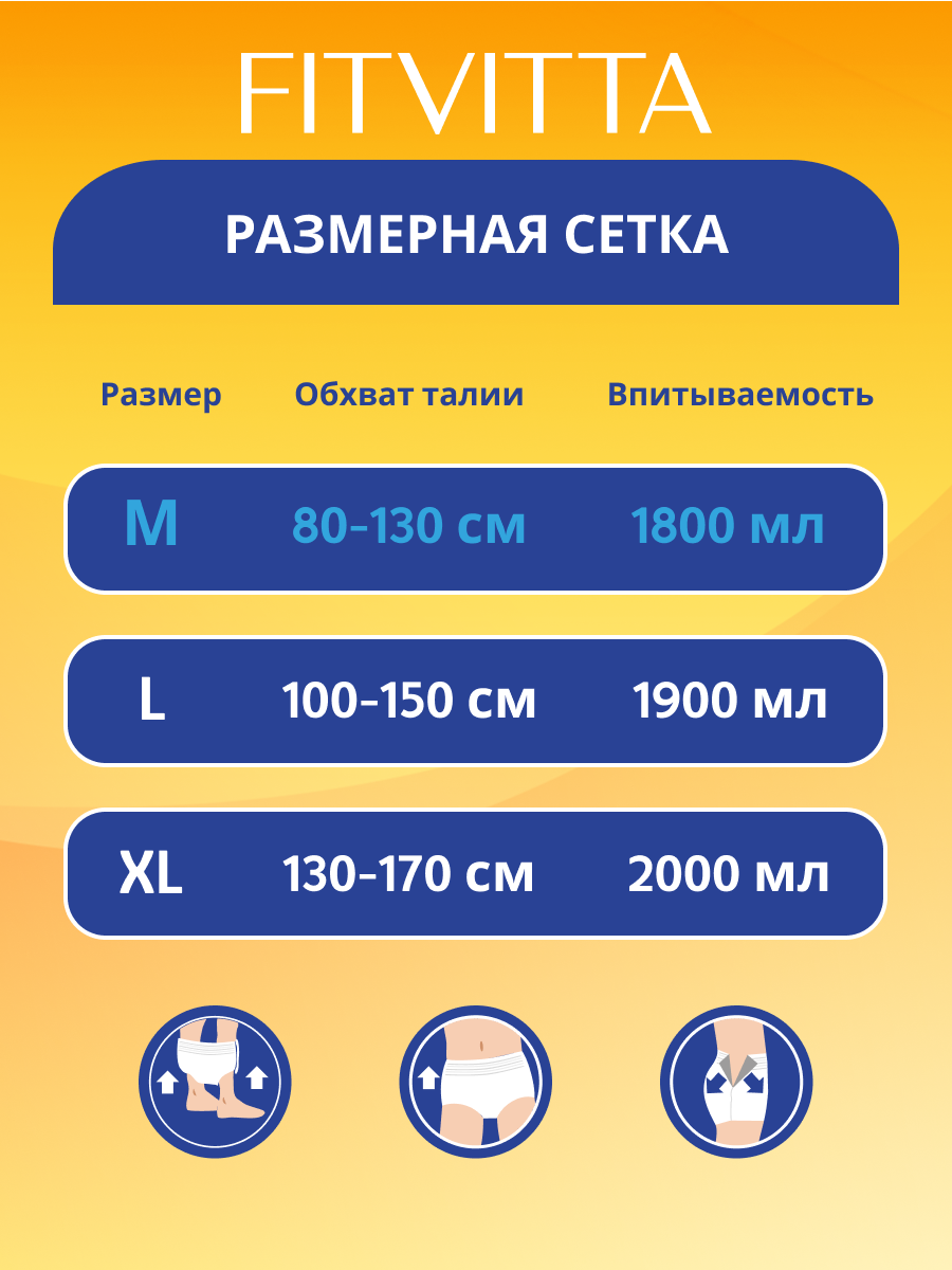 Подгузники-трусики для взрослых FITVITTA, размер M , обхват талии до 120 см, 10 шт. в упаковке интересное: