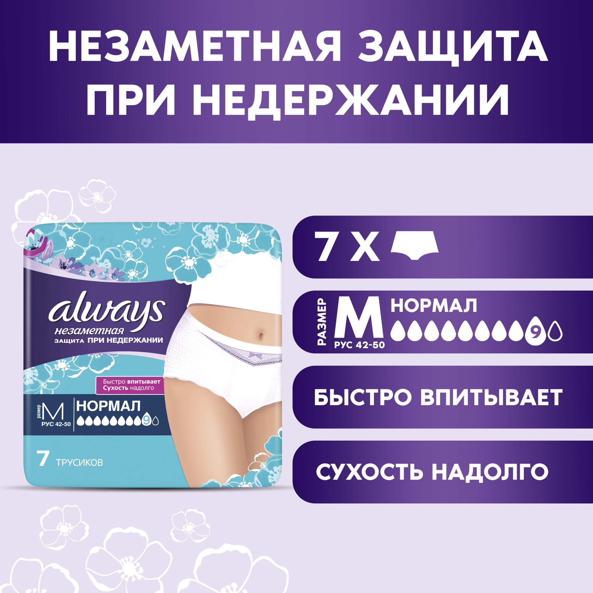 Трусы при недержании Always Незаметная Защита 9 Капель M, 7 шт.