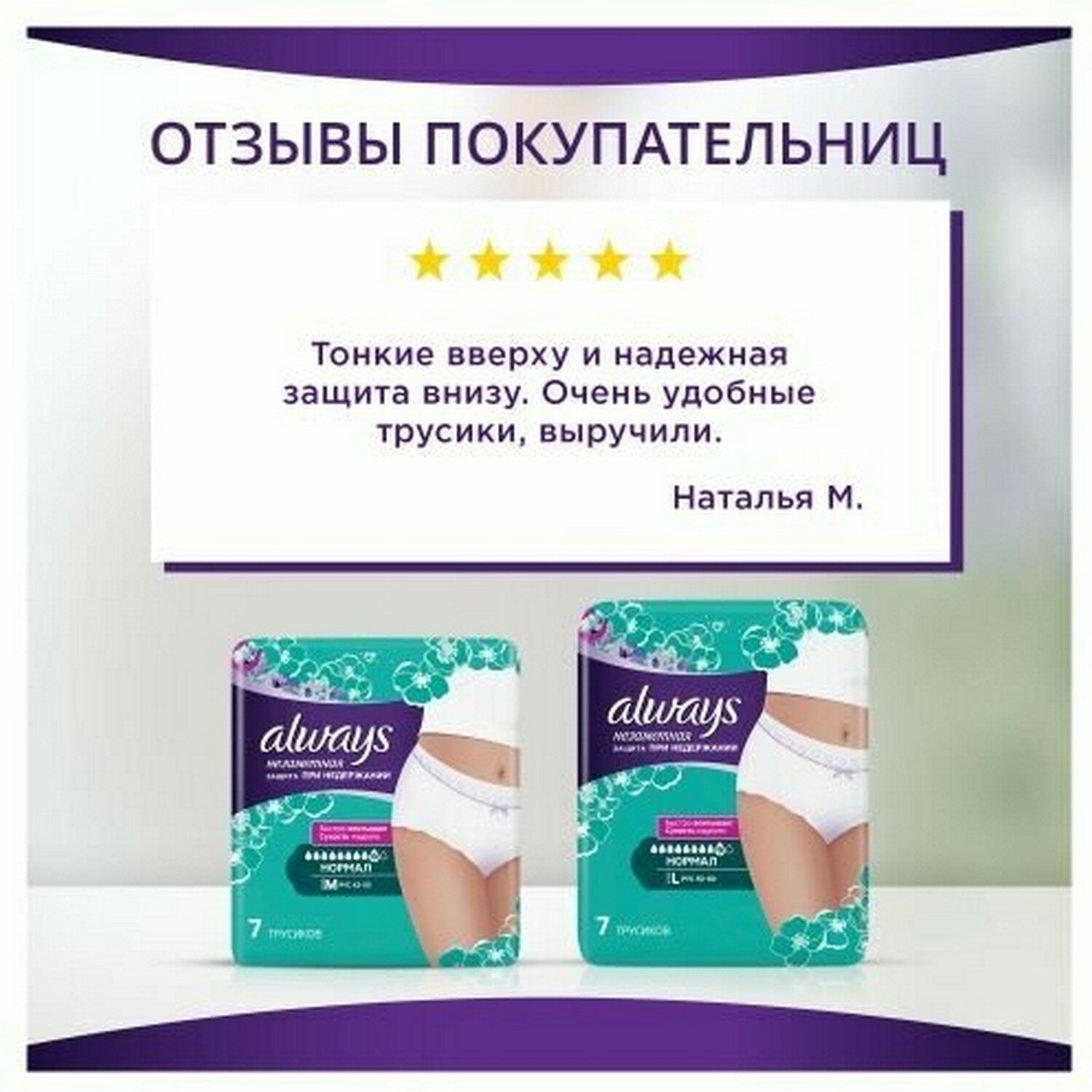 Ниже Вы можете прочитать отзывы на Впитывающие трусики Always Незаметная защита при недержании, размер М, 7 шт, ознакомится с подробными характеристиками, посмотреть интересные обзоры и фотографии на Впитывающие трусики Always Незаметная защита при недержании, размер М, 7 шт.