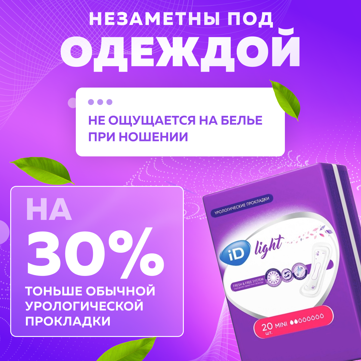 iD Light Mini / АйДи Лайт Мини - урологические прокладки, супертонкие, 20 шт. интересное: