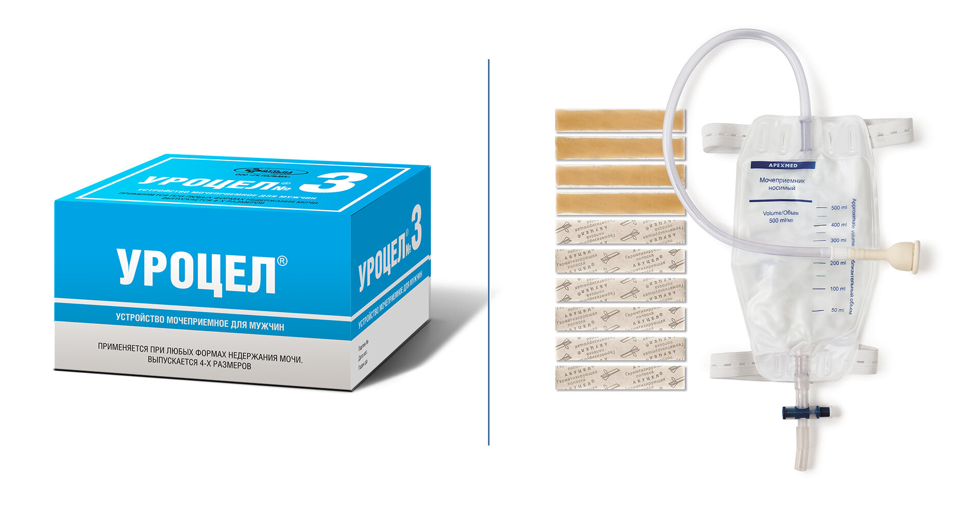 | Комплектация | крепится на пенисе с помощью специальной герметизирующей полоски, предотвращающей подтекание мочи между кожей и уропрезервативом |