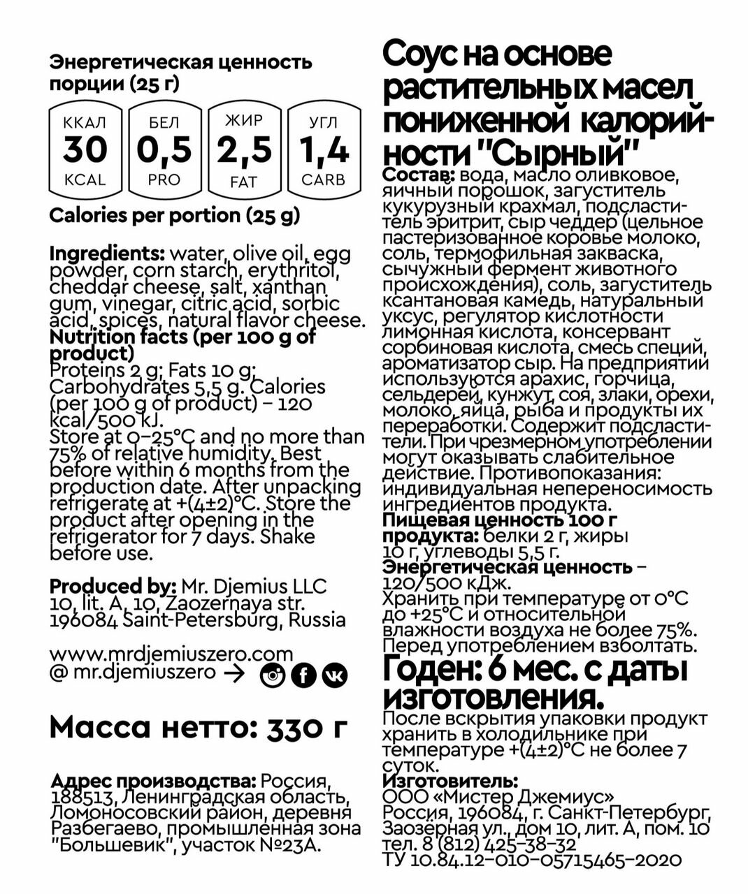 Mr. Djemius Соус 330 мл Сырный интересное: