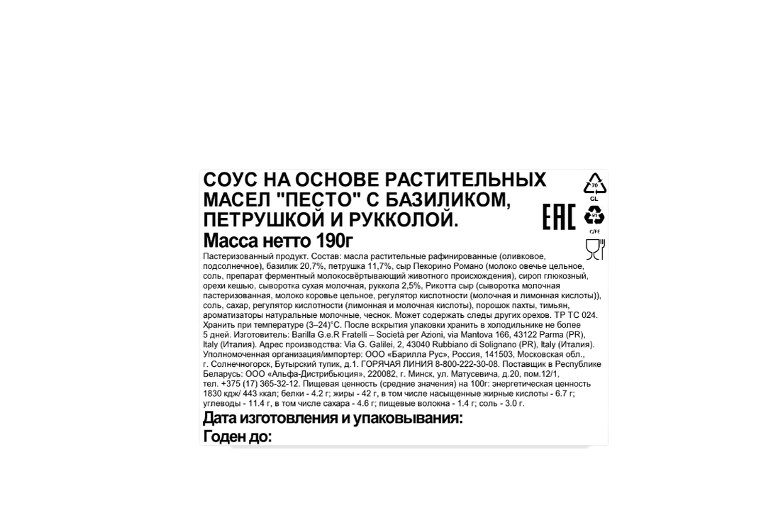 Соус Barilla Pesto (Песто дженовезе с базиликом и рукколой) 190 г интересное: