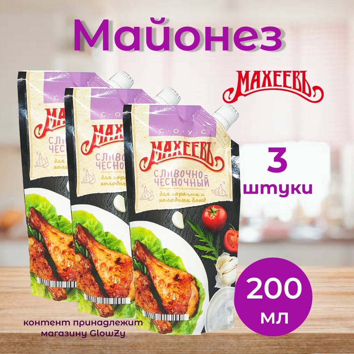 Махеевъ/ Майонезный соус Сливочно-чесночный, 200 г, 3 шт интересное: