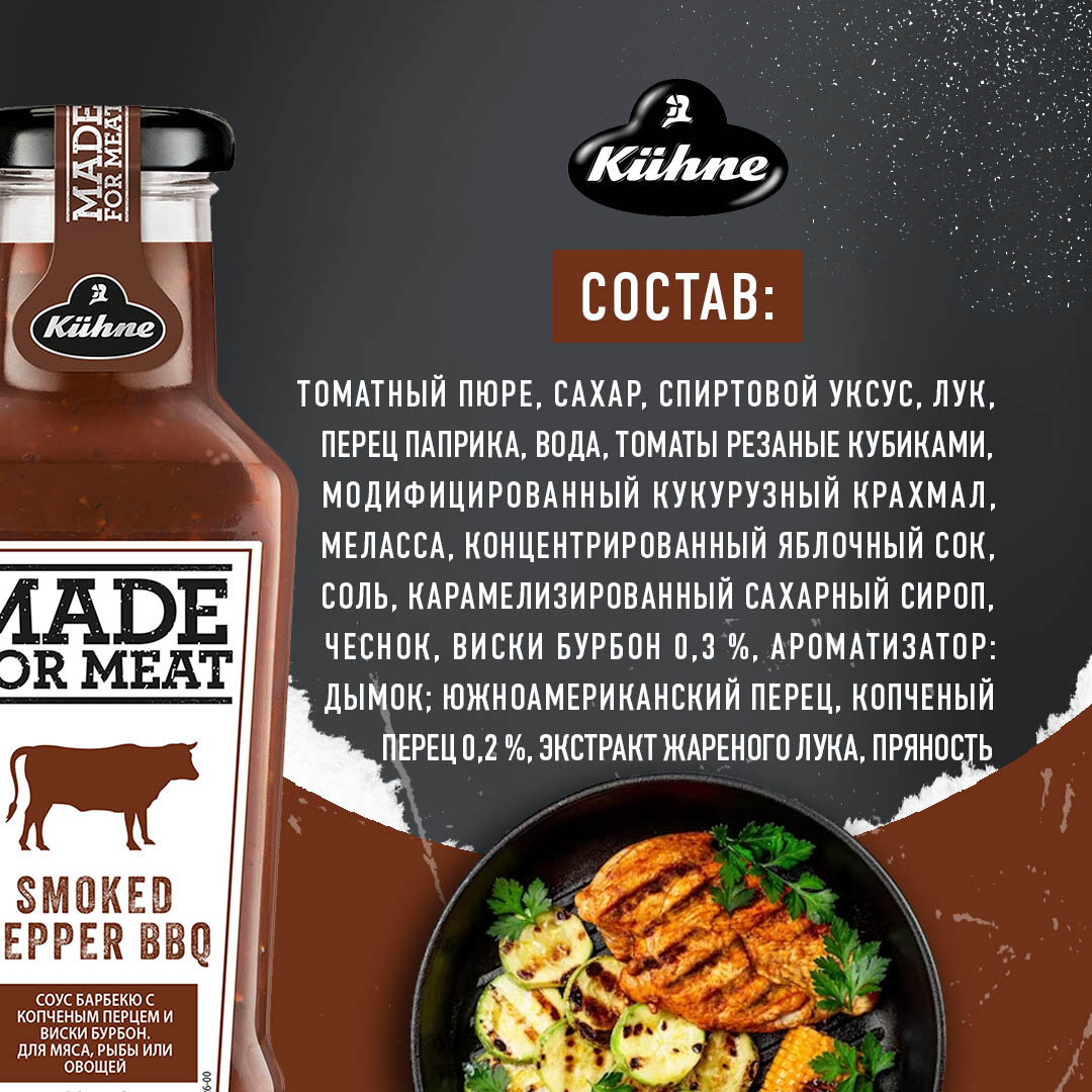 Соус томатный Kuhne Made for Meat Smoked Pepper BBQ барбекю с копченым перцем, 235мл интересное: