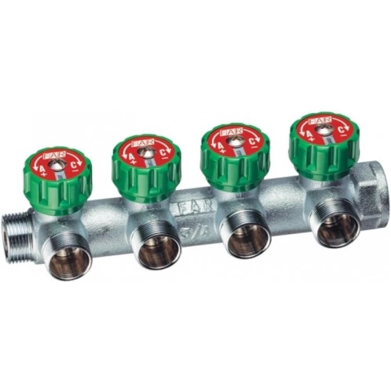 Купить Коллектор FAR 1"х1/2" 4 выхода под плоскую прокладку хромированный с вентилями