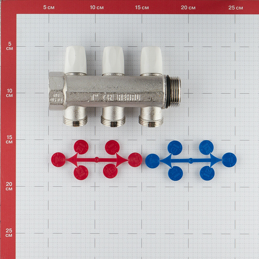 Коллектор распределительный, Rehau, 1", 3 контура, размер отвода-3/4" ЕК