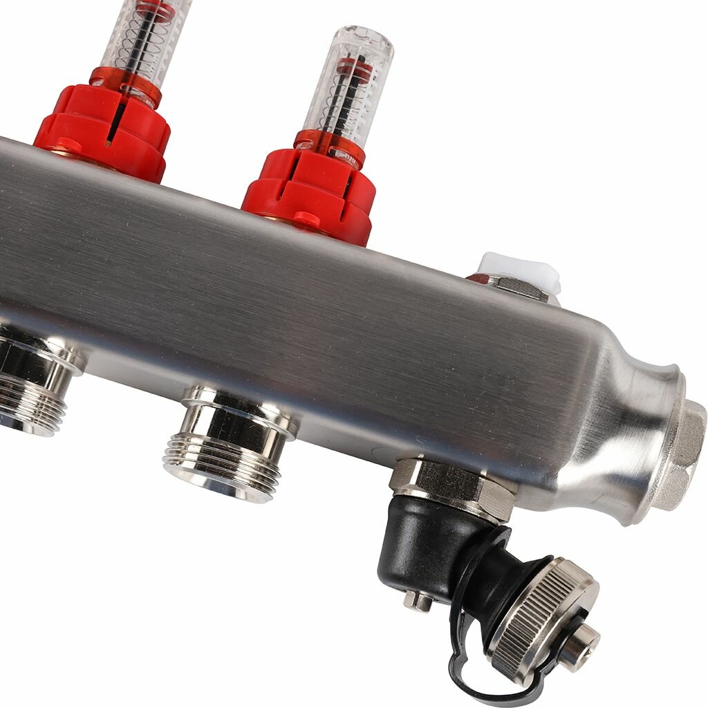Коллектор из нержавеющей стали с расходомерами, с клапаном вып. воздуха и сливом 2 вых. ROMMER RMS-1201-000002