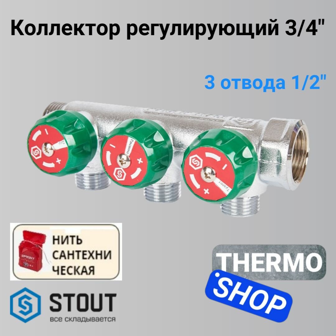 STOUT SMB-6850-341203 Коллектор регулирующий 3/4, 3 отвода 1/2 RG008UJDITG2F9