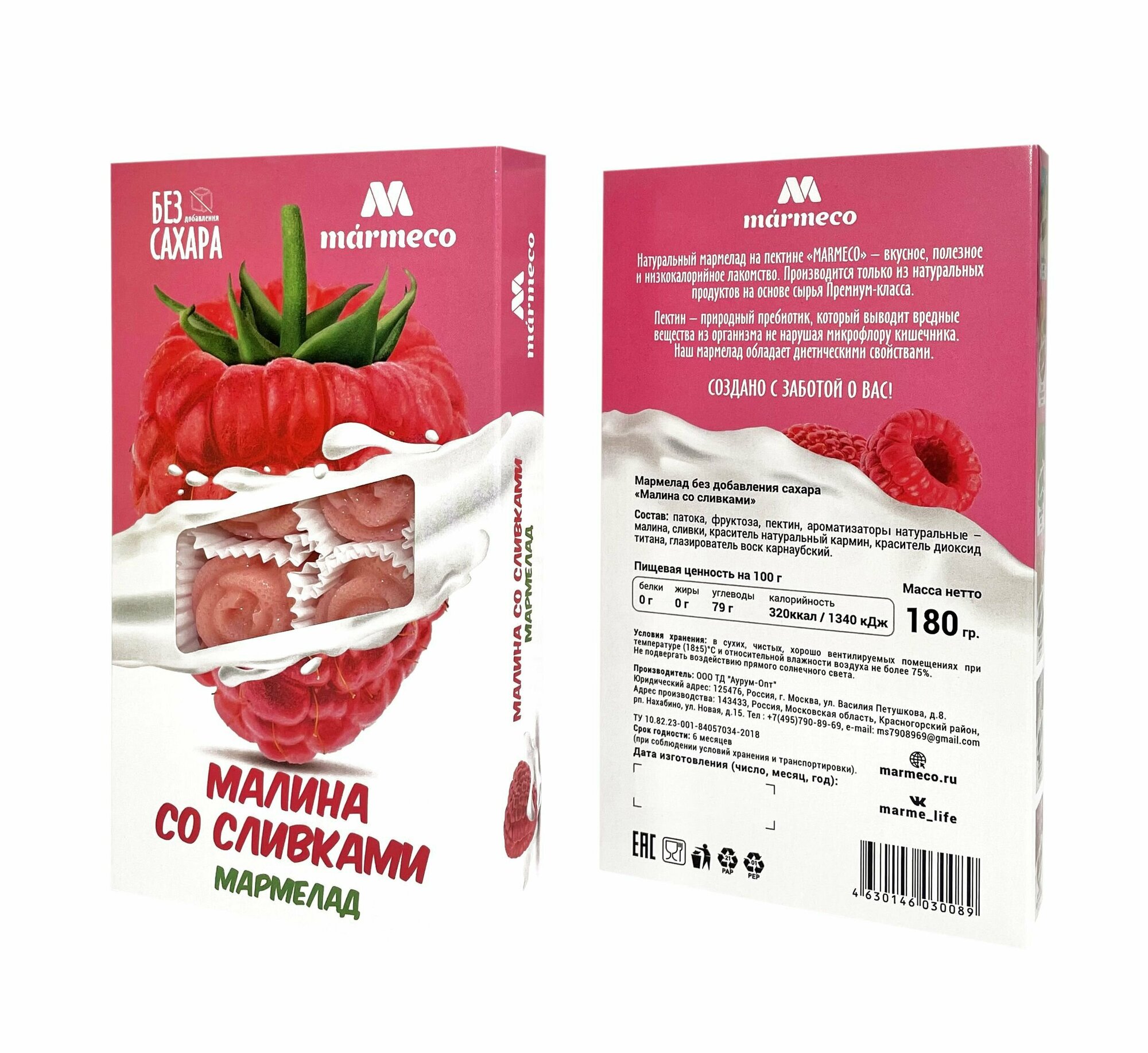 Мармелад Marmeco "Малина со Сливки", без сахара, натуральный, 180г