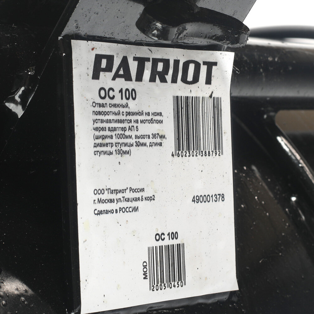 Отвал снежный Patriot ОС 100, арт. 490001378 интересное:
