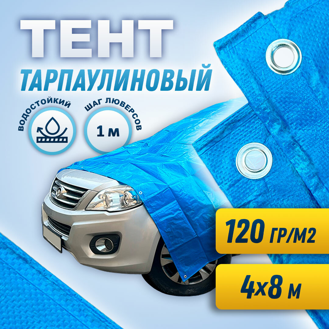 Тент Тарпаулин 4 х 8 м голубой
