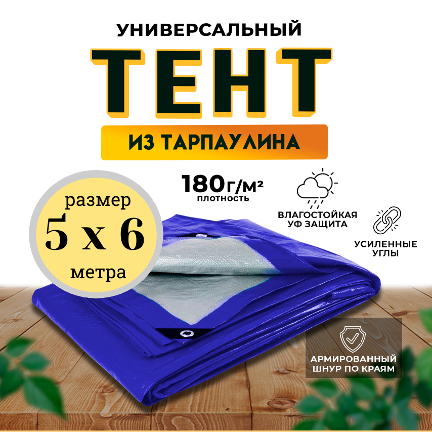 Тент укрывной туристический универсальный 5м х 6м 120 гр/м2