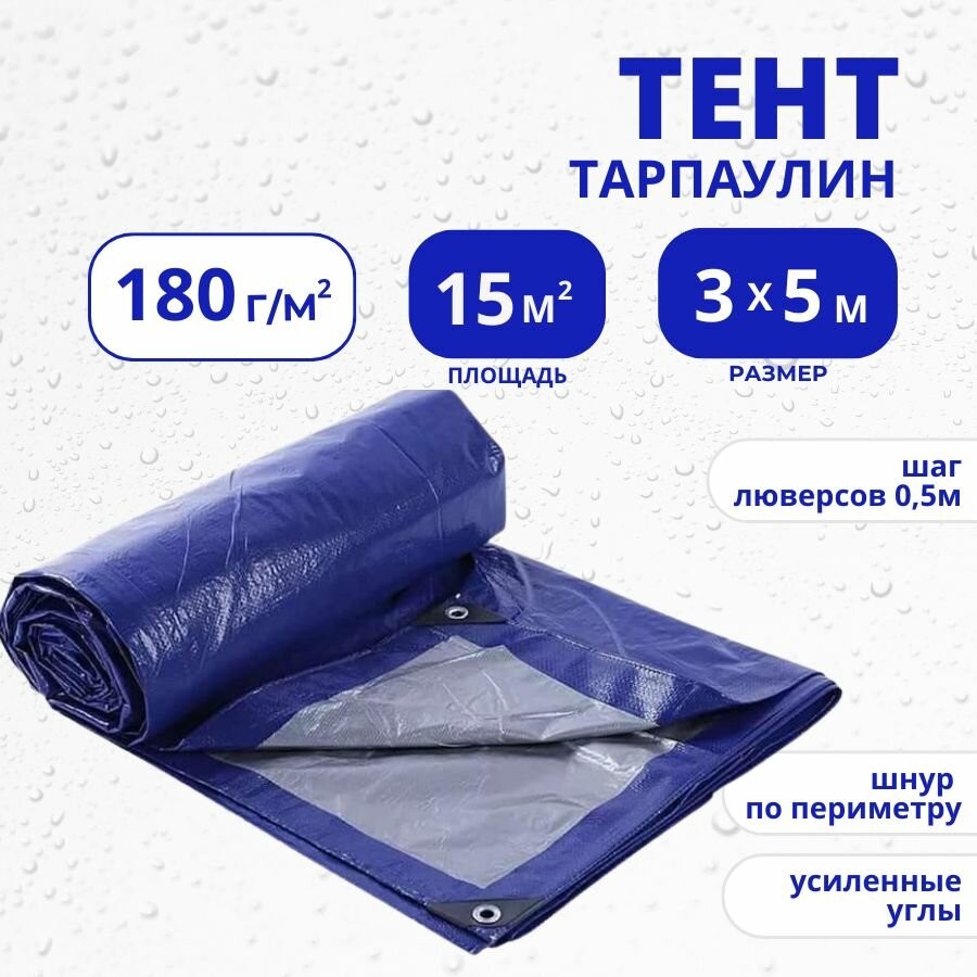 Тент Тарпаулин 180 г/м2 3х5 с люверсами