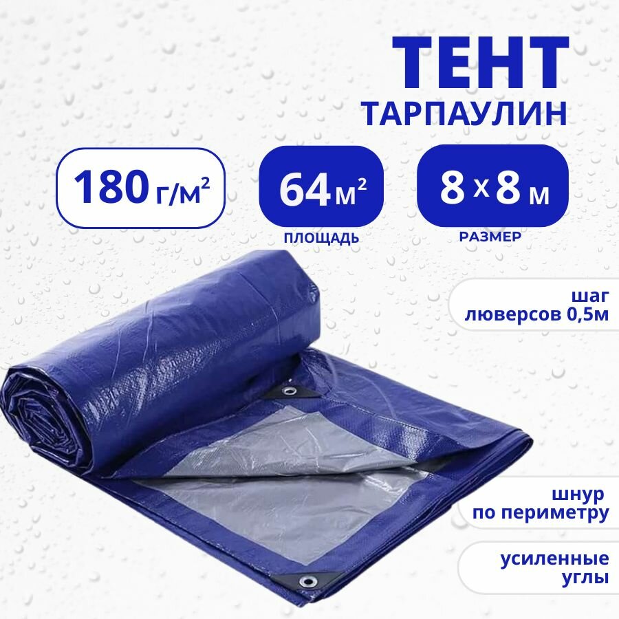 Купить Тент, полог, баннер 8х8 м, 180 г/м2 "Тарпикс" плотный тарпаулин (строительный, укрывной, хозяйственный, туристический) с люверсами