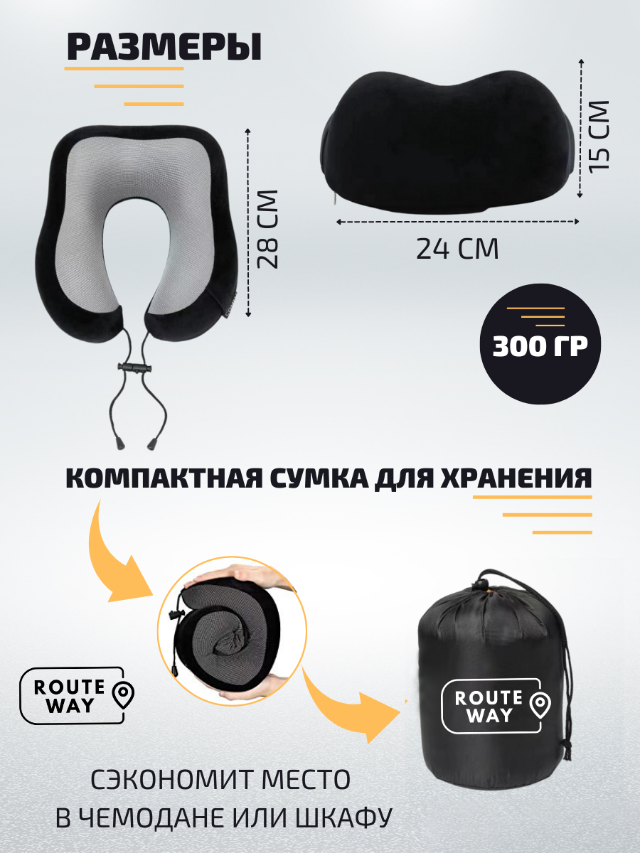 Подушка для шеи Routeway, 1 шт., размер M, черный