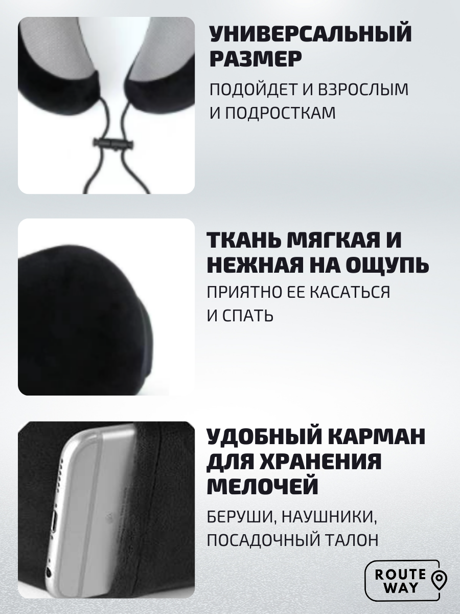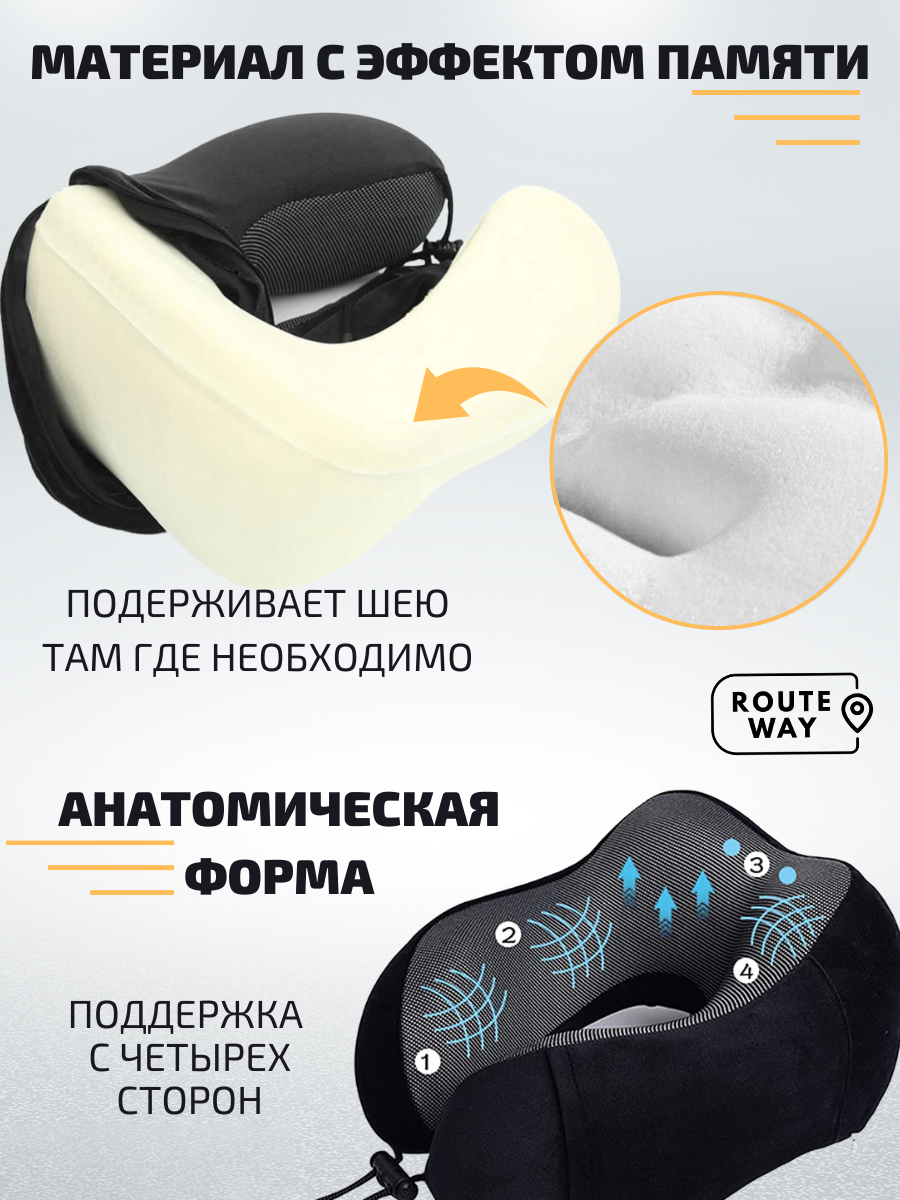 Подушка для шеи с эффектом памяти Velur черная с карманом интересное: