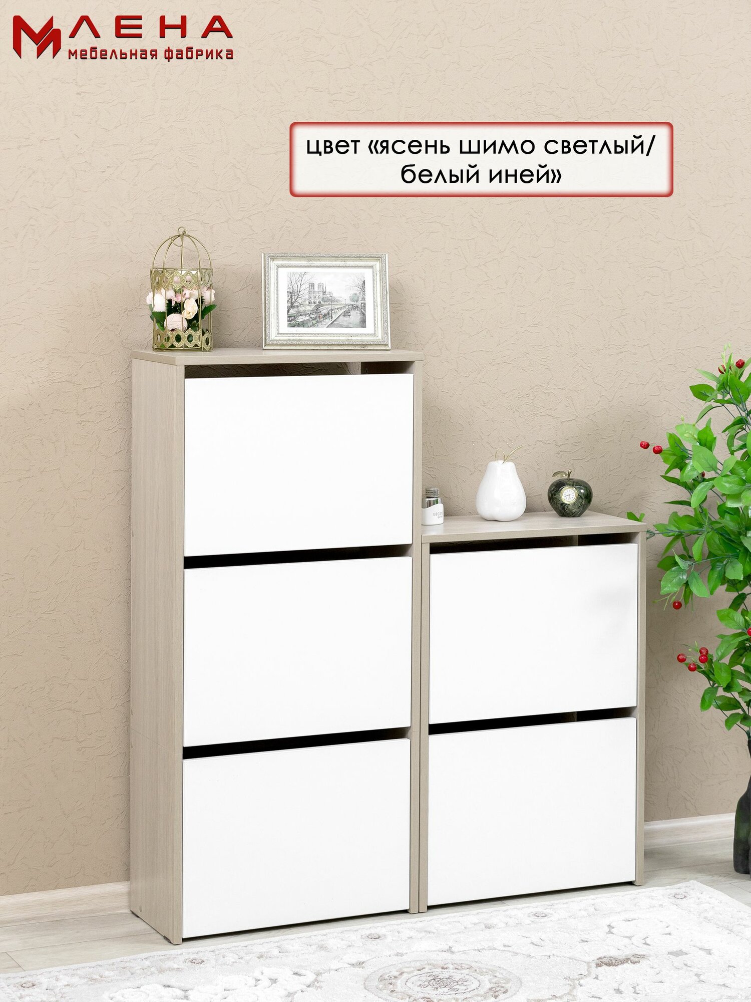 Обувница, тумба для обуви в цвете ясень шимо светлый/белый интересное: