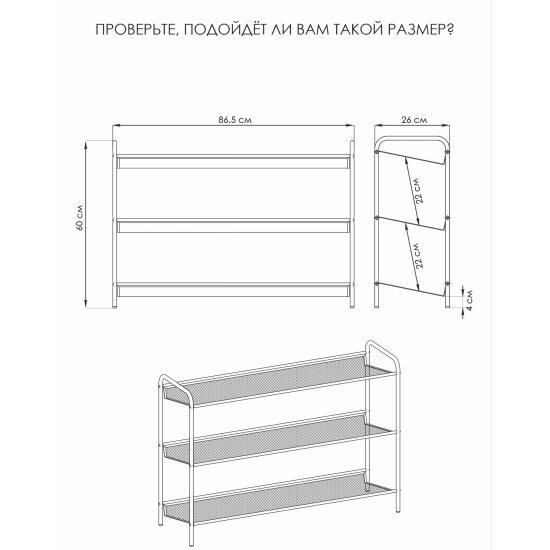 Подставка для обуви ЗМИ женева - 33 ПДО Ж33 3 полки, черный