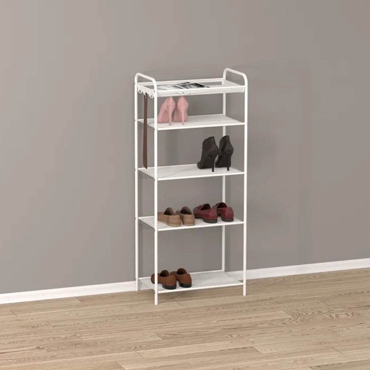 Обувница ЗМИ Верона 23, этажерка в прихожую на 9 пар обуви, 3 металлические полки, белая