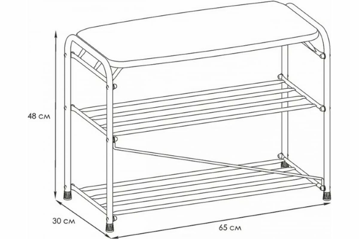 | Комплектация | Полка для обуви "Женева-23", 645х270х600 мм, 3 полки, металл, чёрная, ПДО Ж23 Ч |