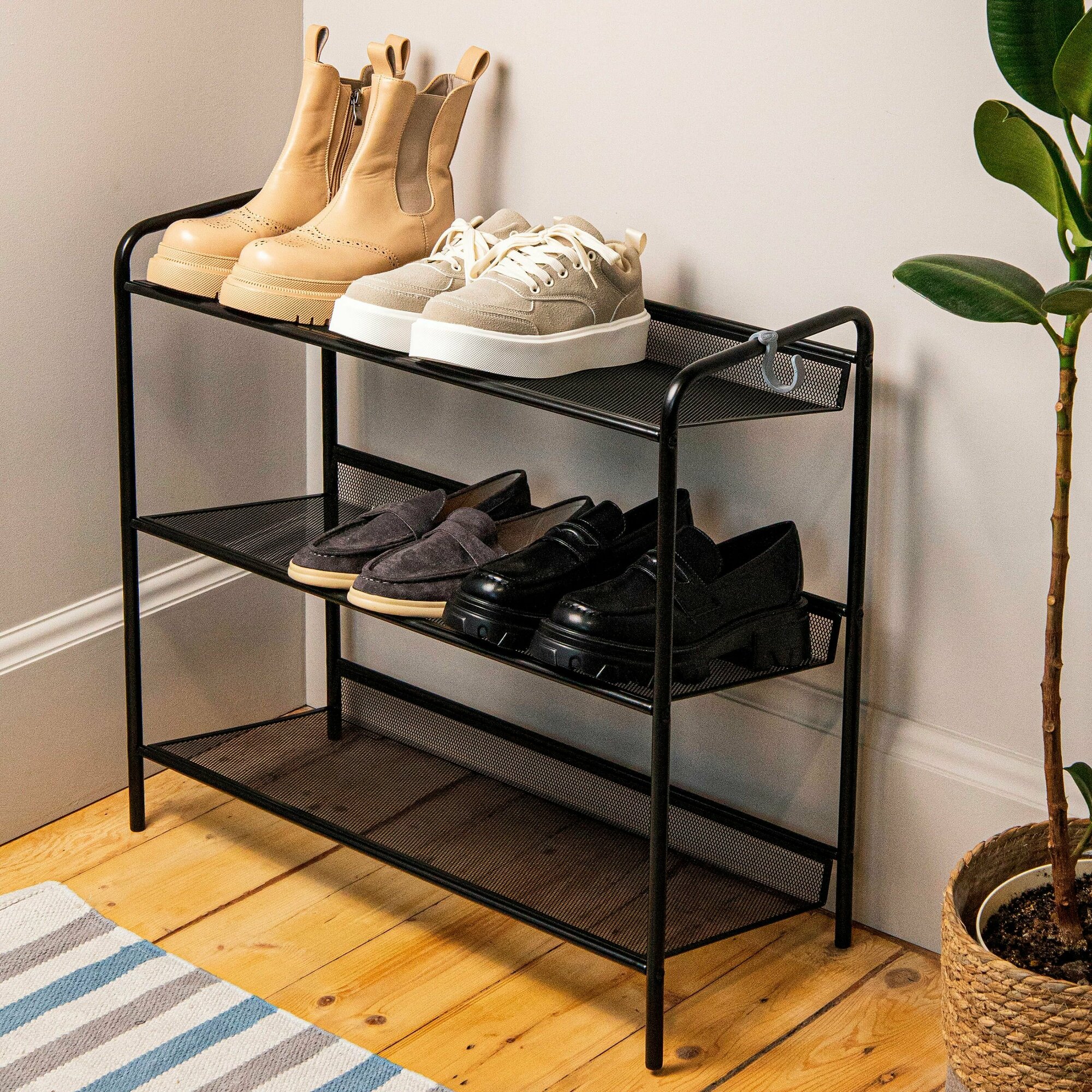 Обувница ЗМИ Верона 23, этажерка в прихожую на 9 пар обуви, 3 металлические полки, черная