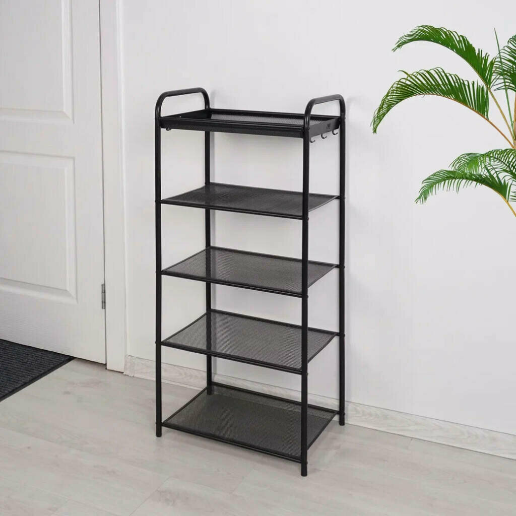Обувница ЗМИ Верона 23, этажерка в прихожую на 9 пар обуви, 3 металлические полки, черная