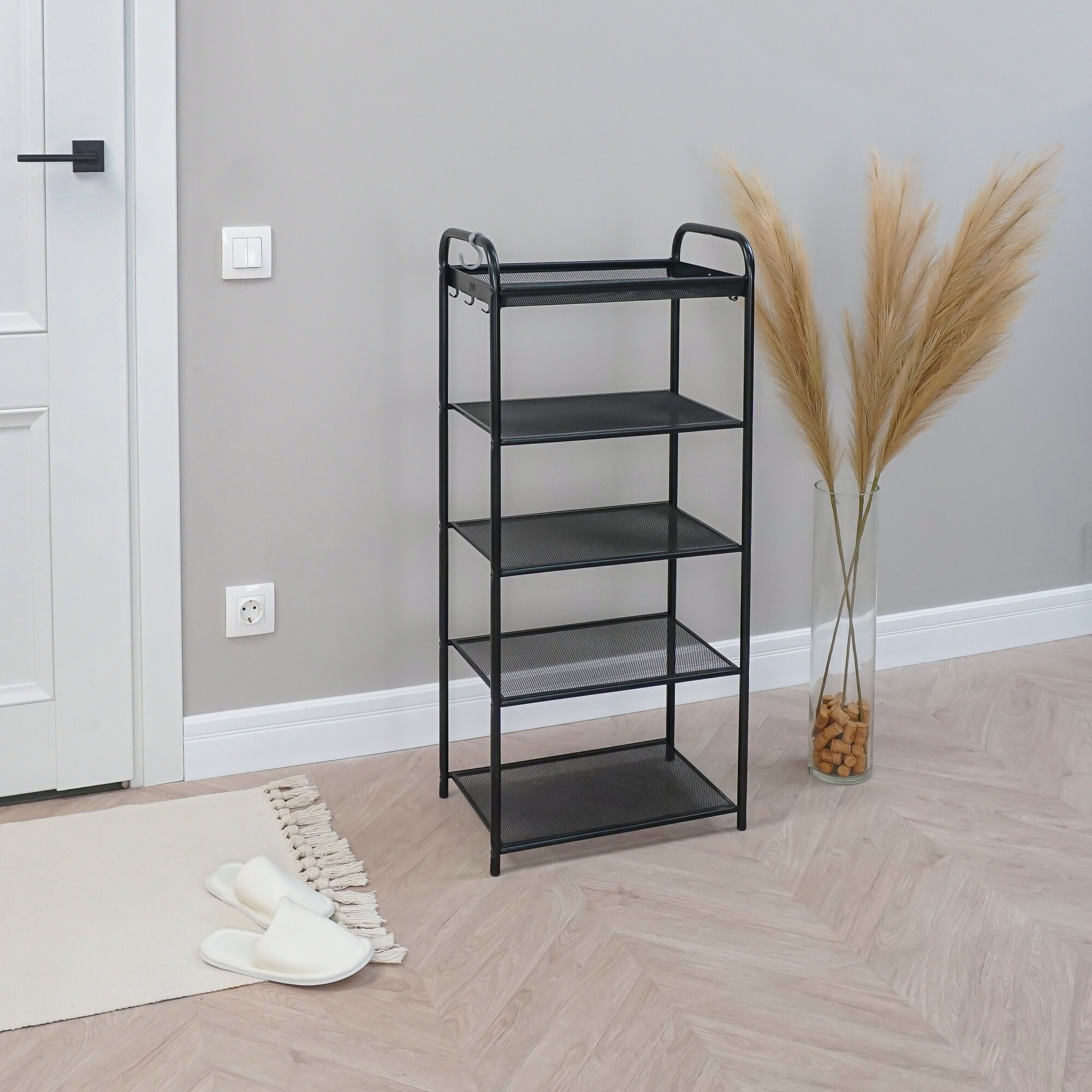 Обувница ЗМИ Альфа 23 с металлическими полками на 9 пар обуви, мебель для прихожей, черная