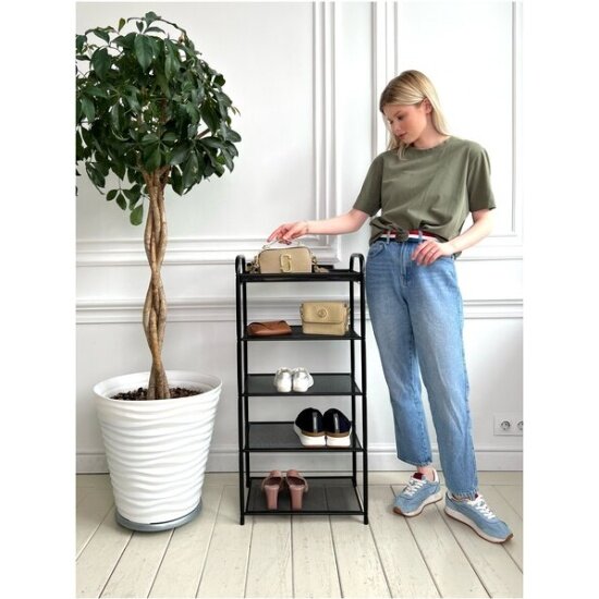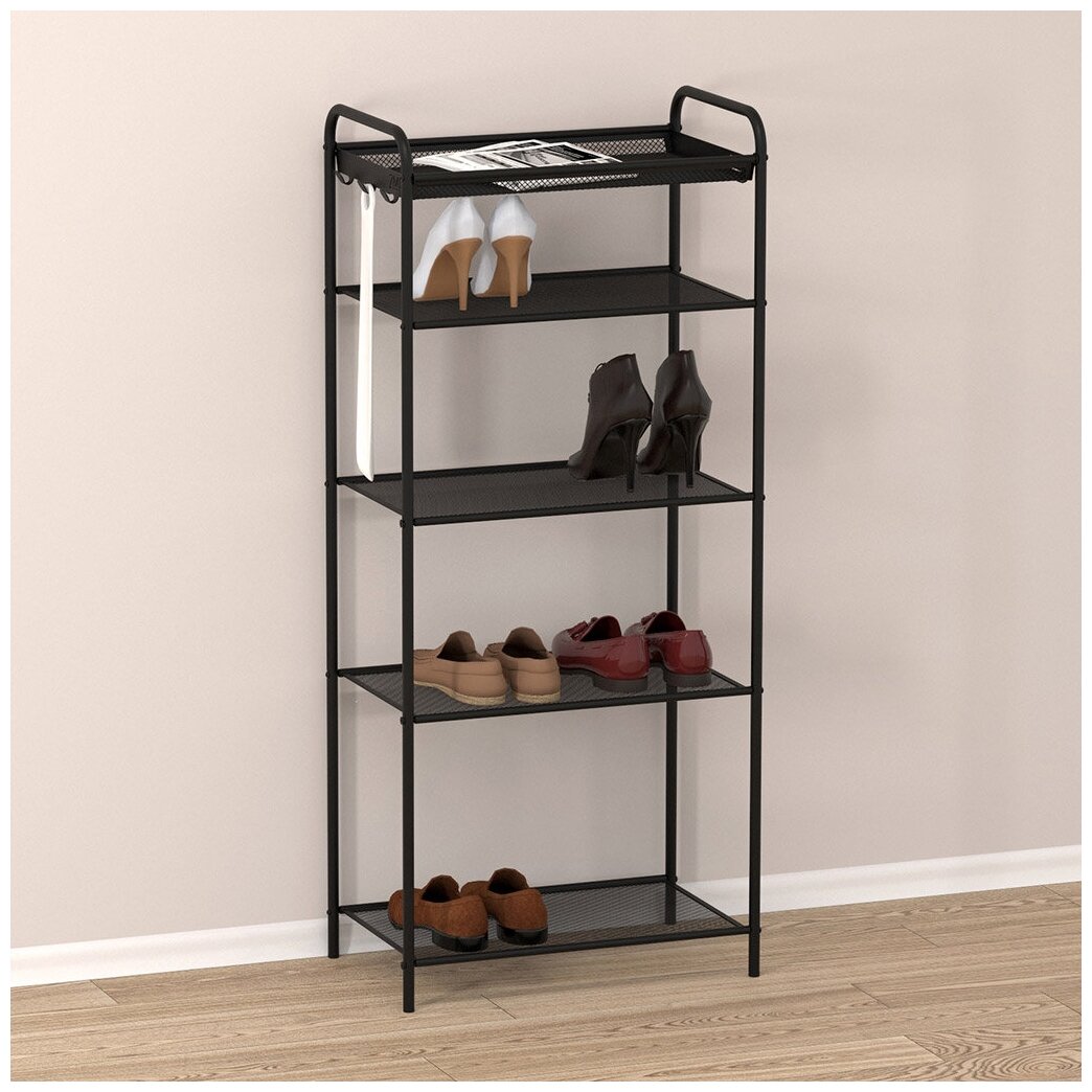 Обувница ЗМИ Верона 23, этажерка в прихожую на 9 пар обуви, 3 металлические полки, черная