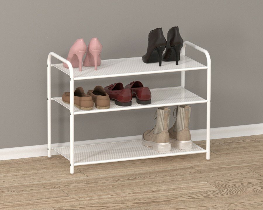 Обувница ЗМИ Верона 23, этажерка в прихожую на 9 пар обуви, 3 металлические полки, белая