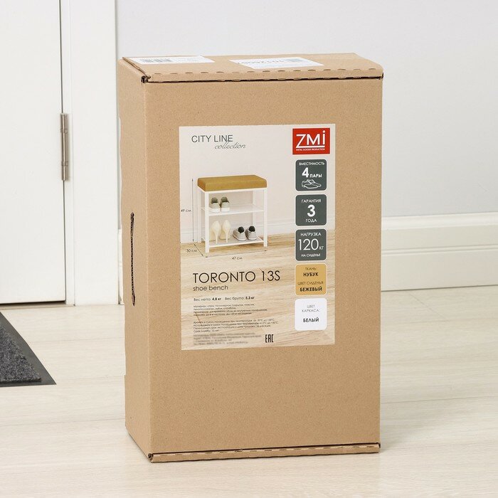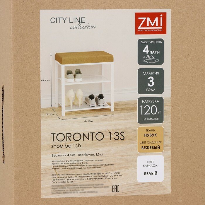 Купить ЗМИ 4610195632496 ЗМИ Банкетка Торонто 13S (TORONTO 13S banquet&shoes) цвет каркаса белый, цвет сиденья бежевый БТ13СББ Банкетка