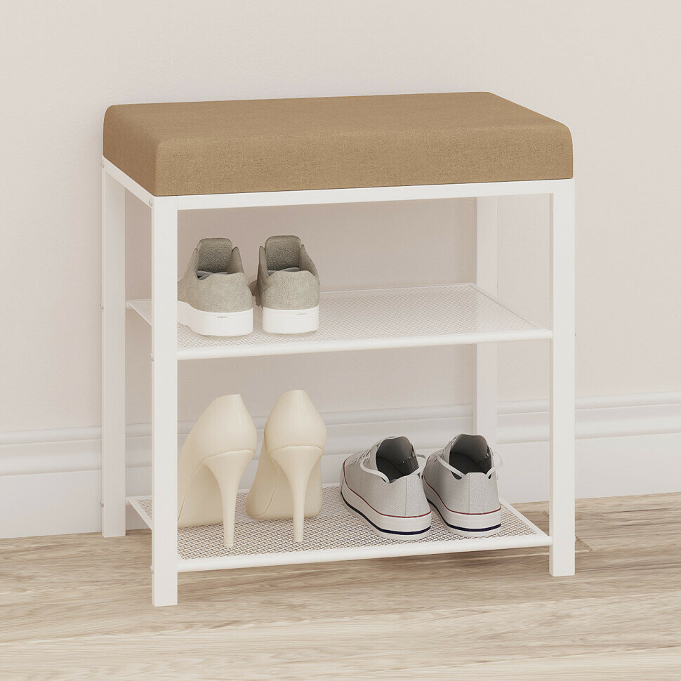 Обувница в прихожую с сиденьем узкая металлическая банкетка