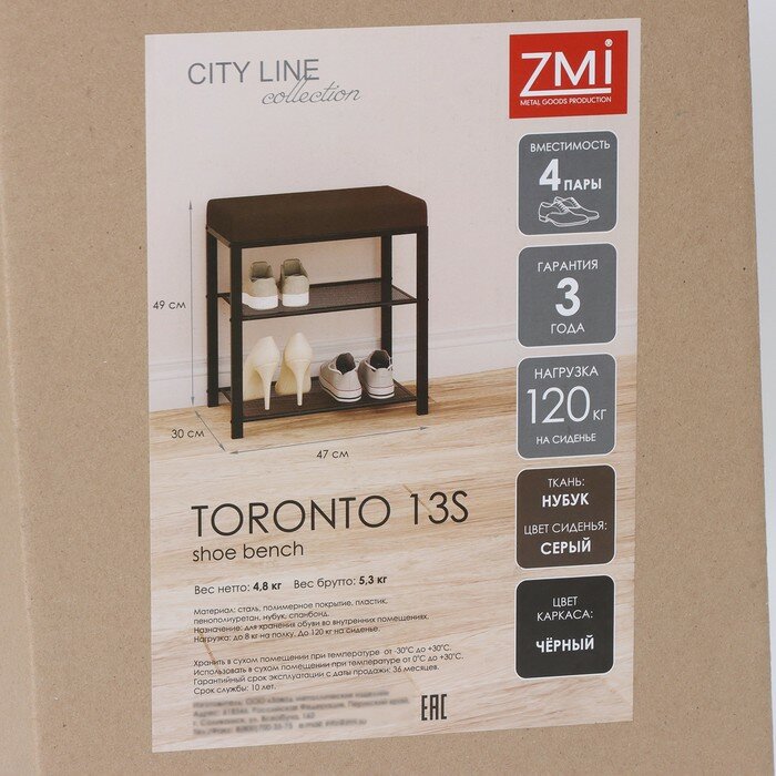 Банкетка для обуви ЗМИ Торонто 13S 47х30х49см, графит, серый (БТ13СГрС)