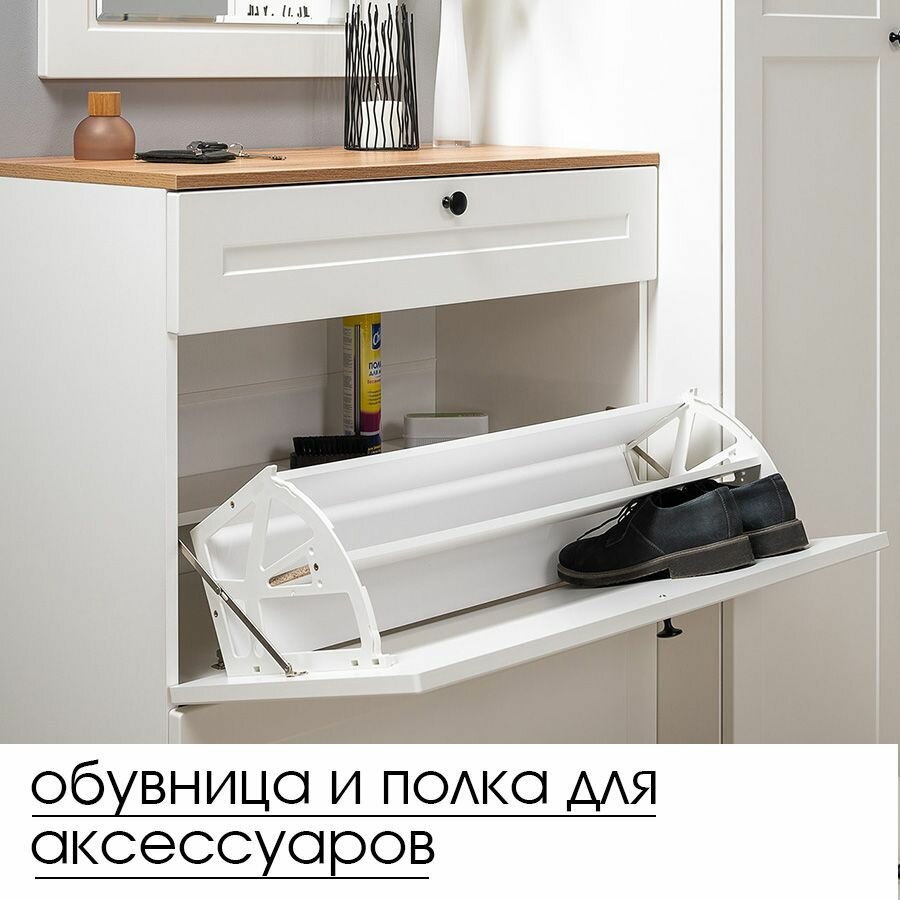 Тумба для обуви Mobi Остин 16.121, цвет белый шагрень/дуб вотан, ШхГхВ 80х41,6х99,3 см.