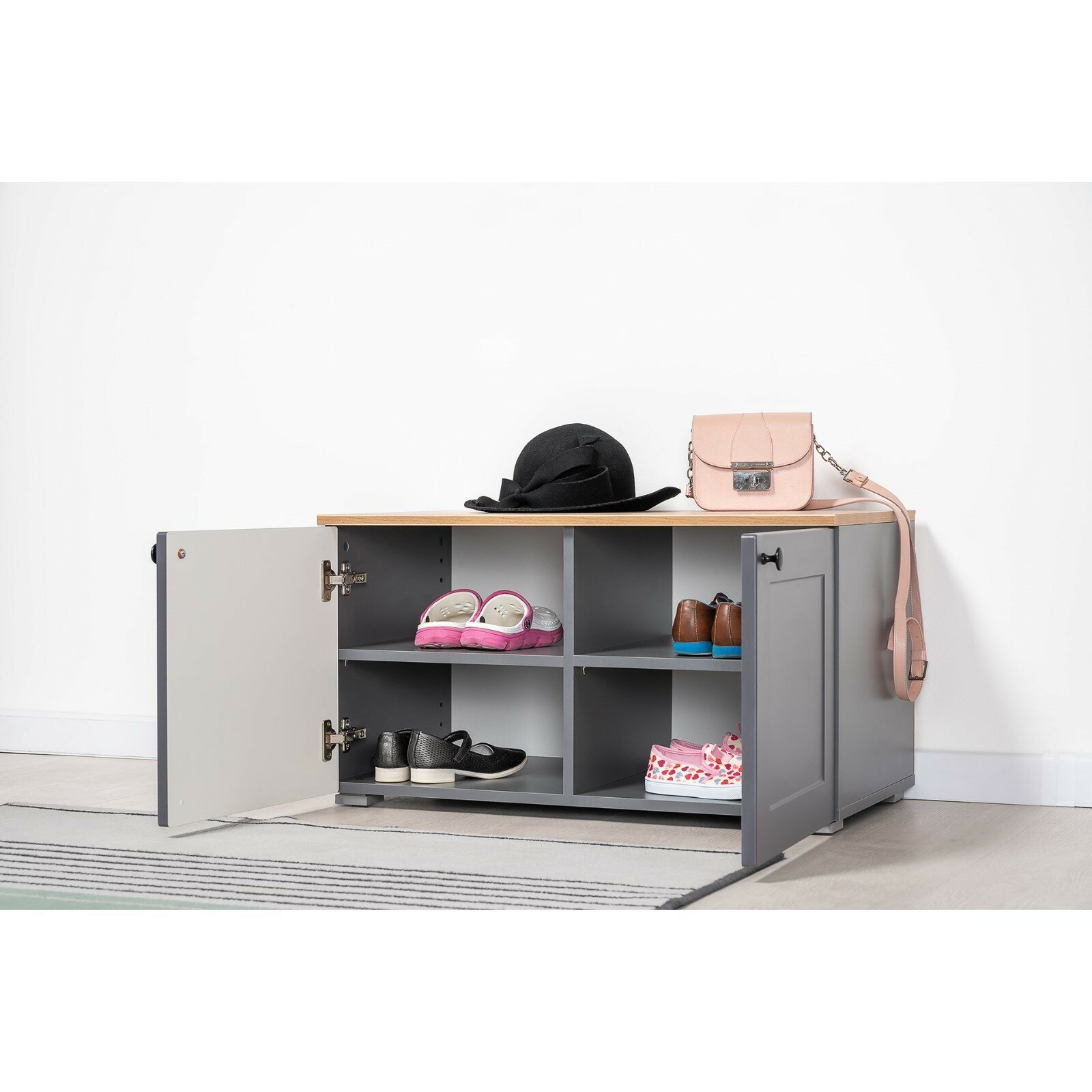 Тумба для обуви Mobi Остин 16.121, цвет серый графит/дуб вотан, ШхГхВ 80х41,6х99,3 см.