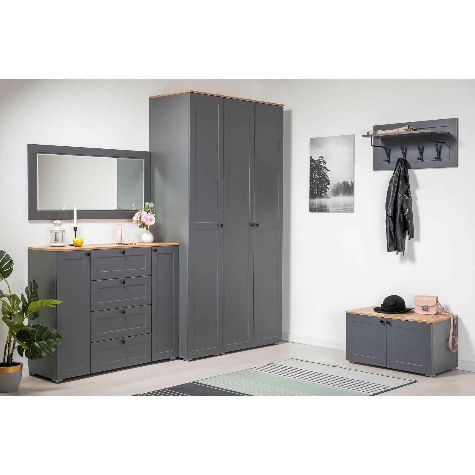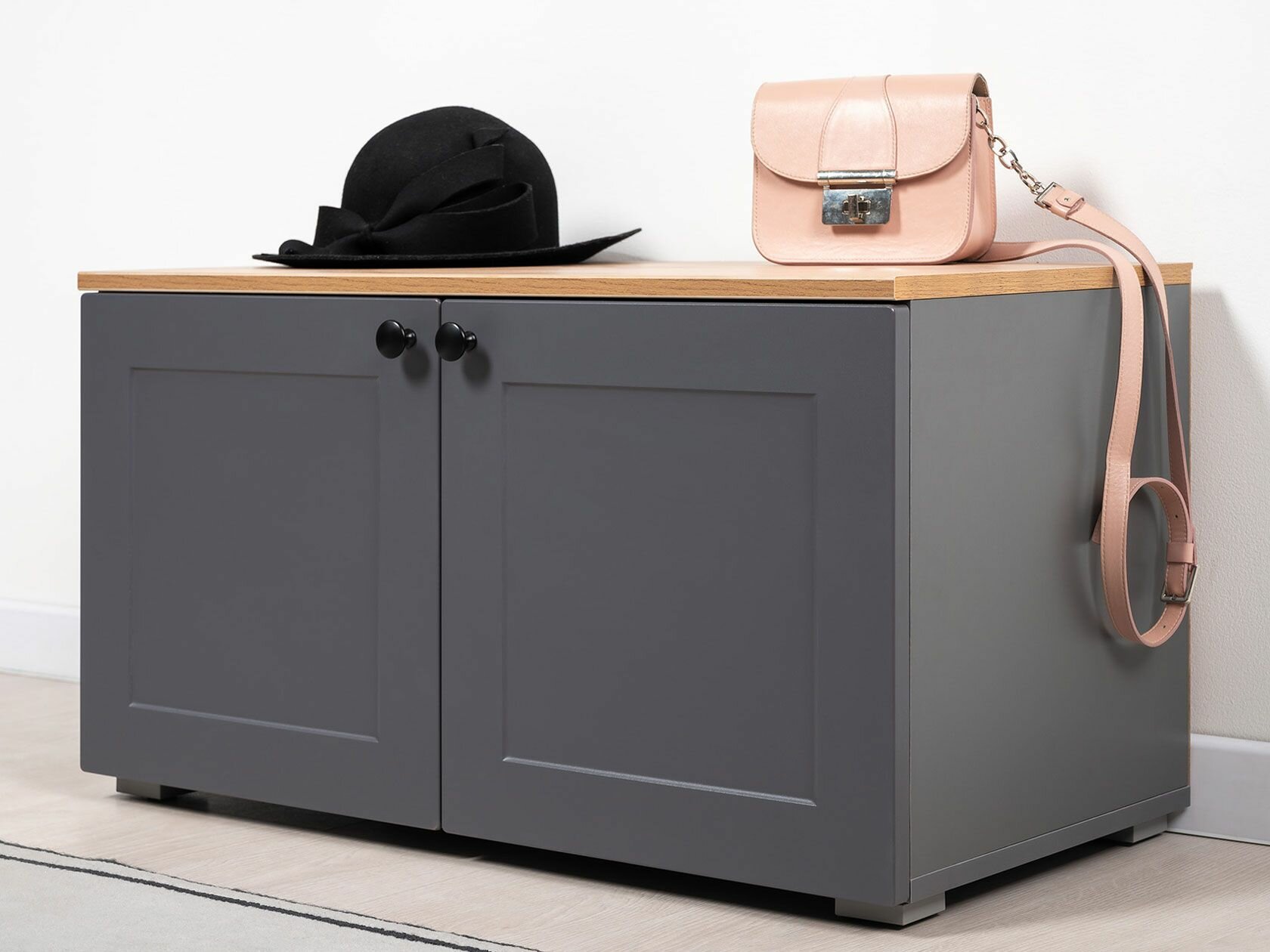СохранитьОбувница узкая Остин для прихожей, закрытая, до 10 пар, 80х42х44 см, Серый графит / Дуб Вотан интересное: