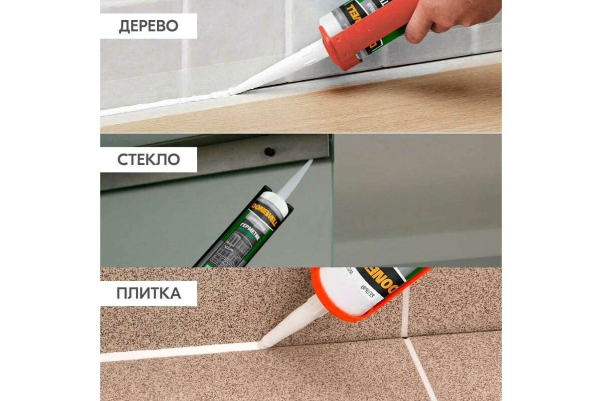 СохранитьГерметик силиконовый DONEWELL санитарный DSK-120, для ванной и кухни, с добавкой против плесени, прозрачный, 260 мл интересное: