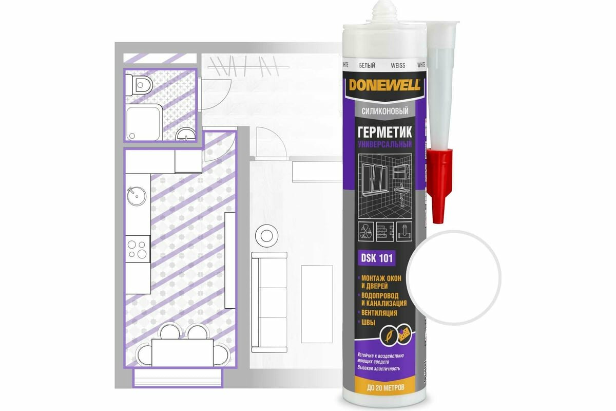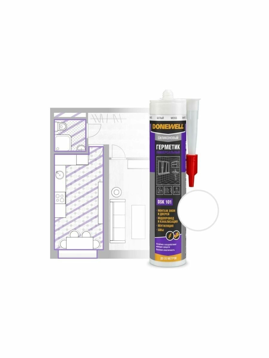 Герметик силиконовый универсальный Donewell DSK 101, 260 мл, белый
