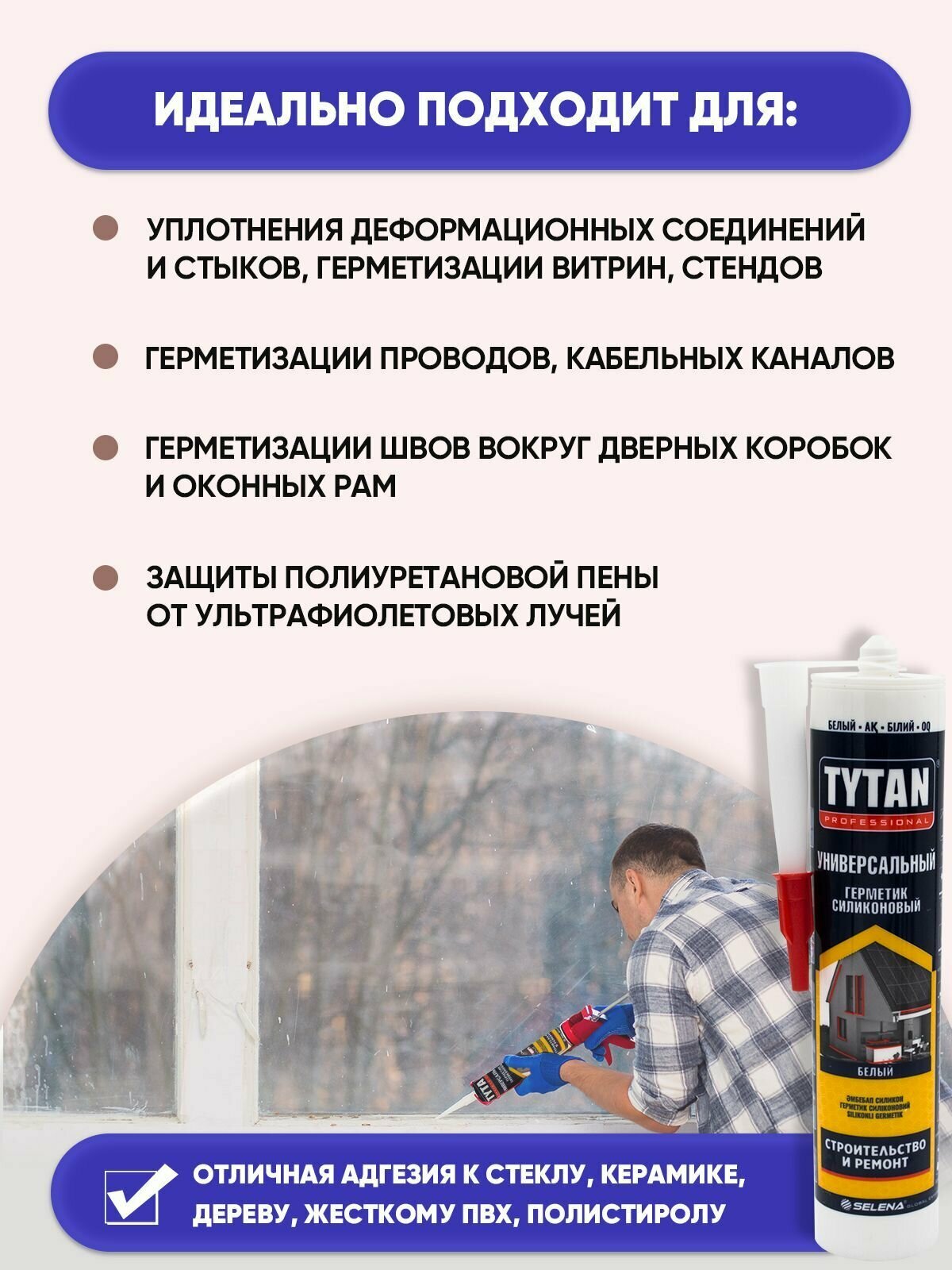 Ниже Вы можете прочитать отзывы на TYTAN PROFESSIONAL Герметик универсальный белый 280мл/1шт, ознакомится с подробными характеристиками, посмотреть интересные обзоры и фотографии на TYTAN PROFESSIONAL Герметик универсальный белый 280мл/1шт.