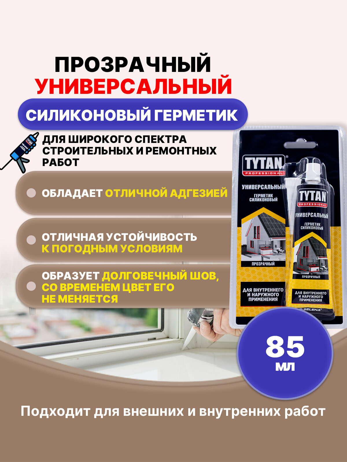 Ниже Вы можете прочитать отзывы на Герметик силиконовый универсальный Tytan Professional Бесцветный 85мл, ознакомится с подробными характеристиками, посмотреть интересные обзоры и фотографии на Герметик силиконовый универсальный Tytan Professional Бесцветный 85мл.