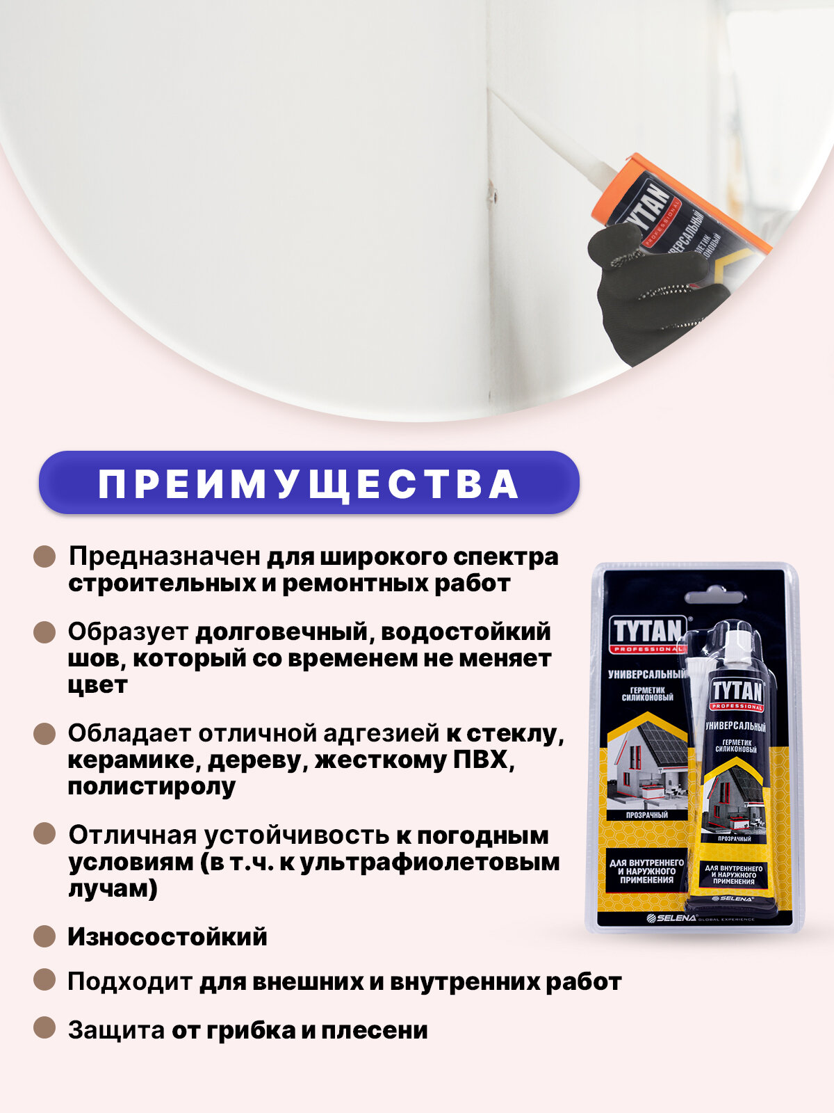| Подробная комплектация | Герметик силиконовый Tytan универсальный прозрачный 280 мл уксусный |