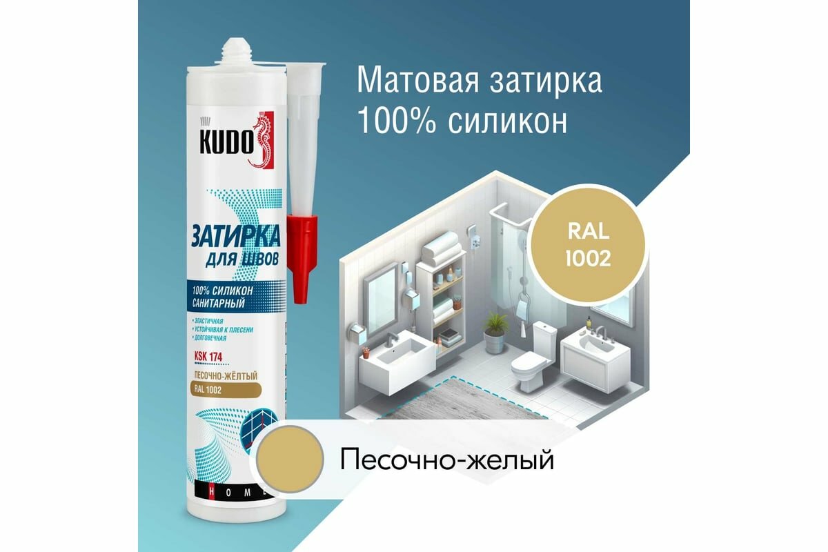 Купить Герметик-затирка для швов KUDO "KSK 174" силиконовый санитарный, песочно-жёлтый RAL 1002, 280 мл