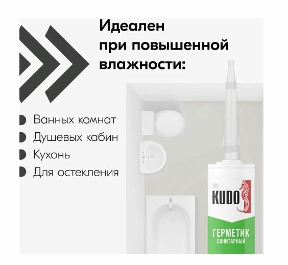 Герметик силиконовый санитарный KST-121 белый 85 мл, Kudo