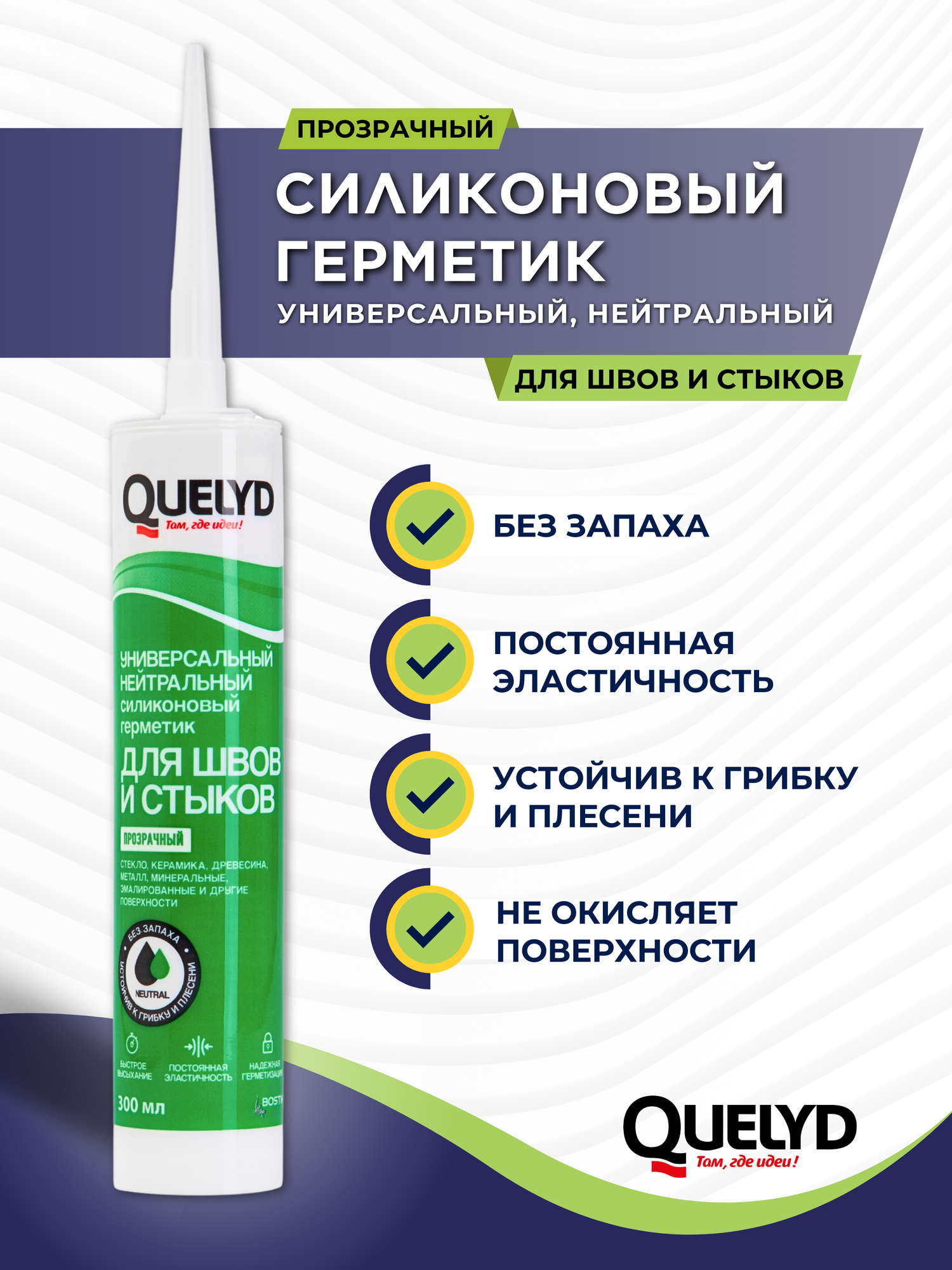 Купить Герметик силикон универсальный нейтральный Quelyd Для швов и стыков прозрачный 300 мл